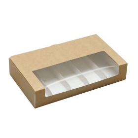 Коробка КРАФТ для эклеров и эскимо с окном (25 см *15 см *5 см 5 ложементов)