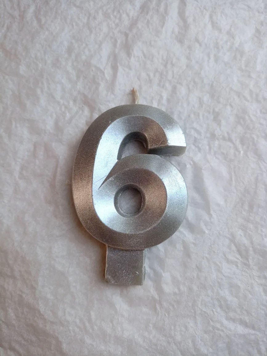 Свеча для торта восковая "Грани", "Цифра 6", серебро