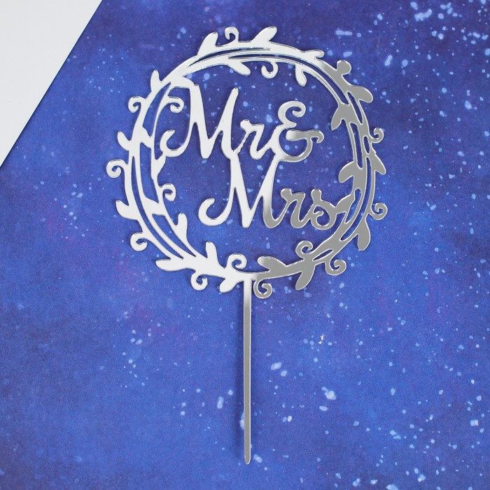 Топпер "Mr&Mrs в " венок, цвет серебро