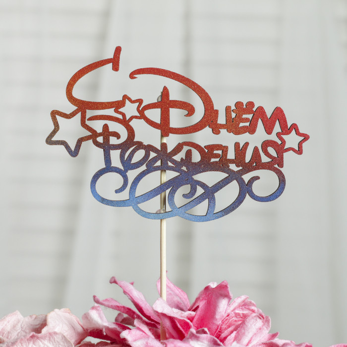 Топпер "С Днём Рождения" с завитушками, на подвесе, трёхцветный