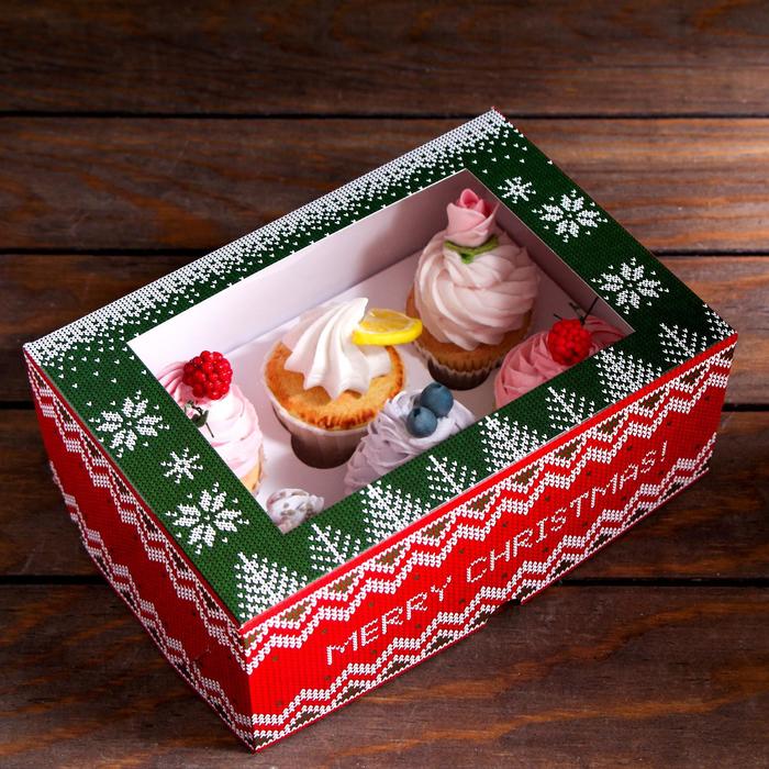 Упаковка на 6 капкейков с окном "Скандинавия", 25 х 17 х 10 см