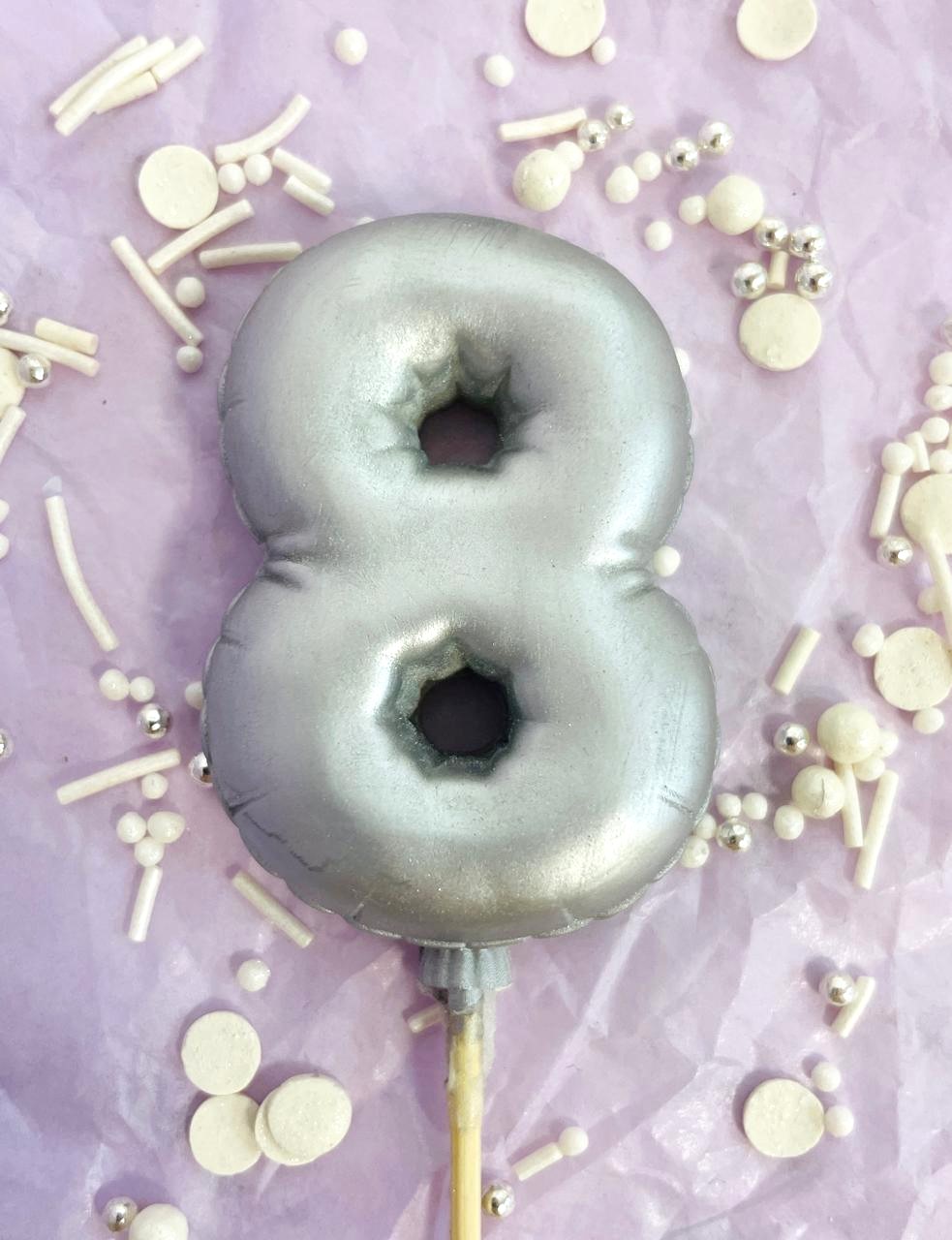 Фигурка из шоколадной глазури "Цифра-Шарик 8" серебро