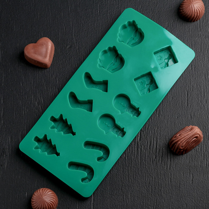 Форма для льда и кондитерских украшений Доляна «Новый год», 21,5×10 см, 12 ячеек, цвет МИКС