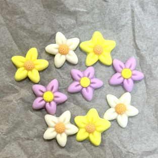 Фигурка из шоколадной глазури Цветочки Микс 2см (9шт)120 руб.Состав: кондитерская глазурь (сахар, заменитель какао нетемперируемый лауринового типа (гидрогенезированное пальмоядровое масло, эмульгаторы: Е492, соевый лецитин), сухая мололочная сыворотка, носитель: карбонат кальция, эмульгатор лецитины: эмульгатор Е476, ароматизатор ванилин), красители (масло р...