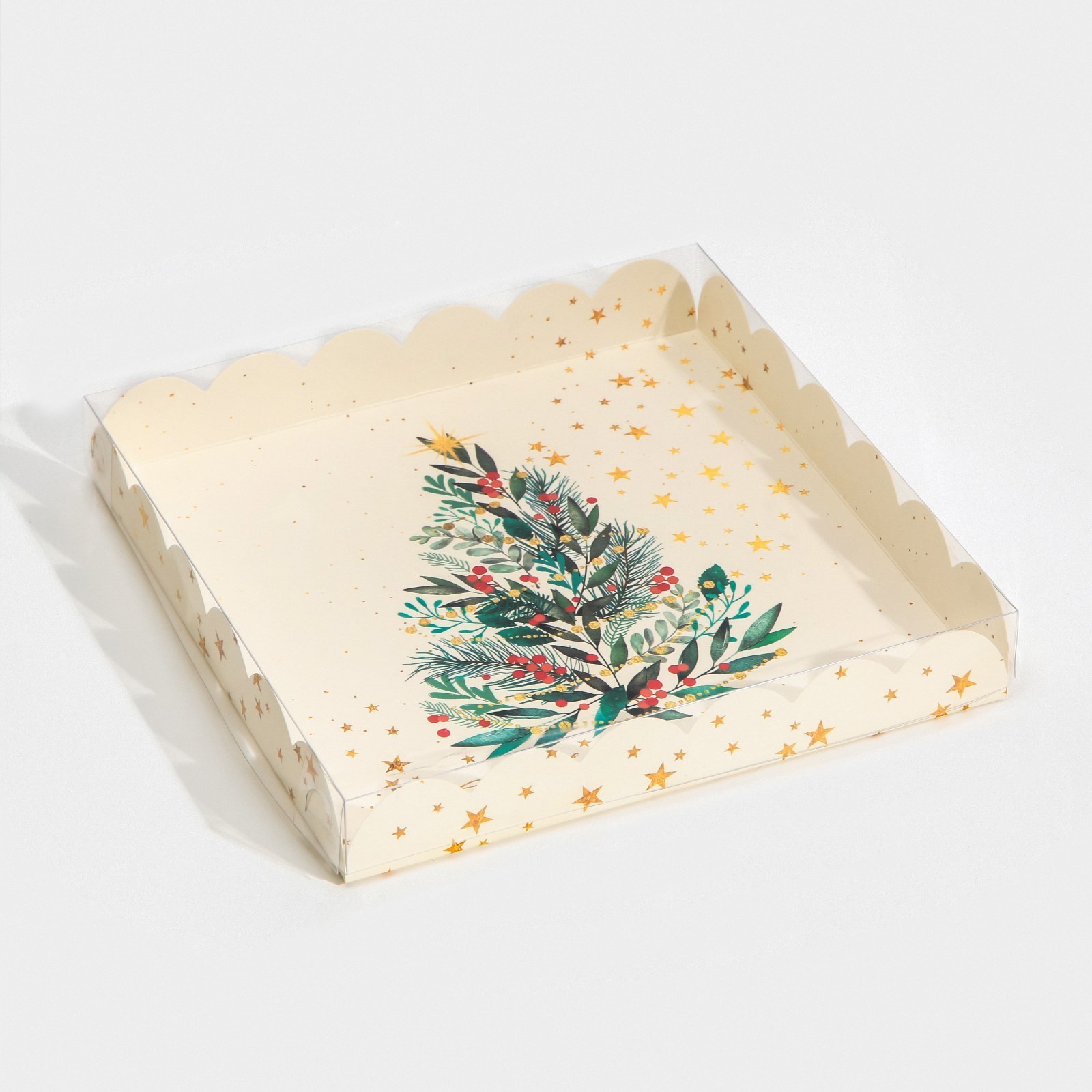 Коробка для кондитерских изделий с PVC крышкой «Елка», 21 × 21 × 3 см