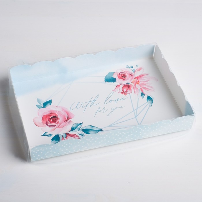 Коробка для кондитерских изделий с PVC-крышкой With love for you, 22 × 15 × 3 см