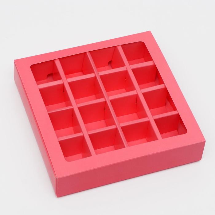 Коробка для конфет, 16 шт, розовая, 17,7 х 17,7 х 3,8 см