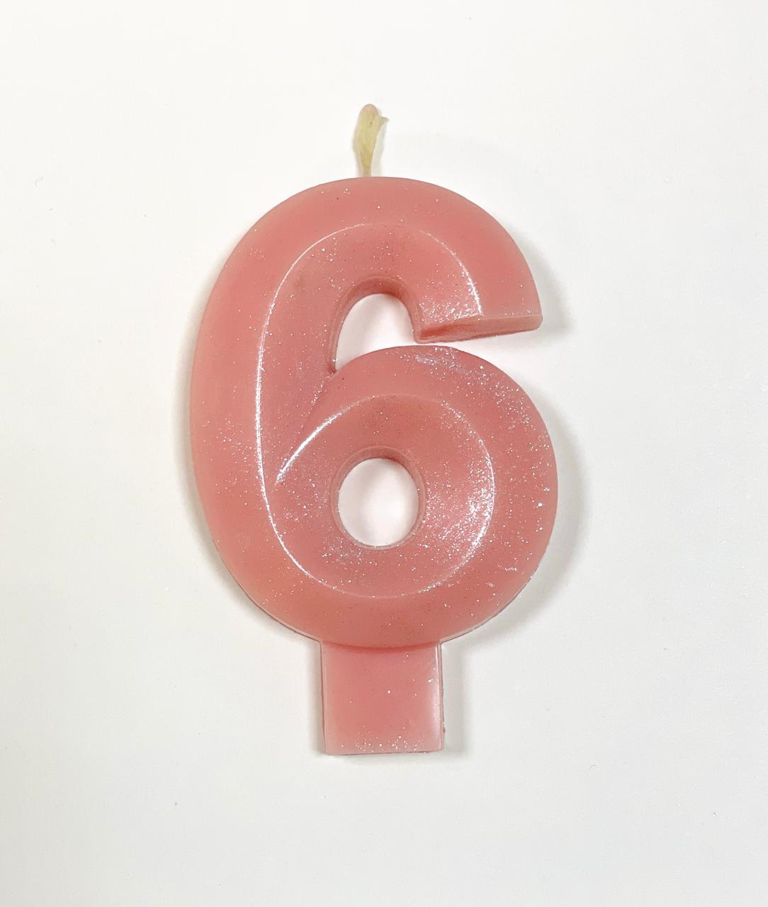 Свеча для торта восковая "Грани", "Цифра 6", розовый перламутр