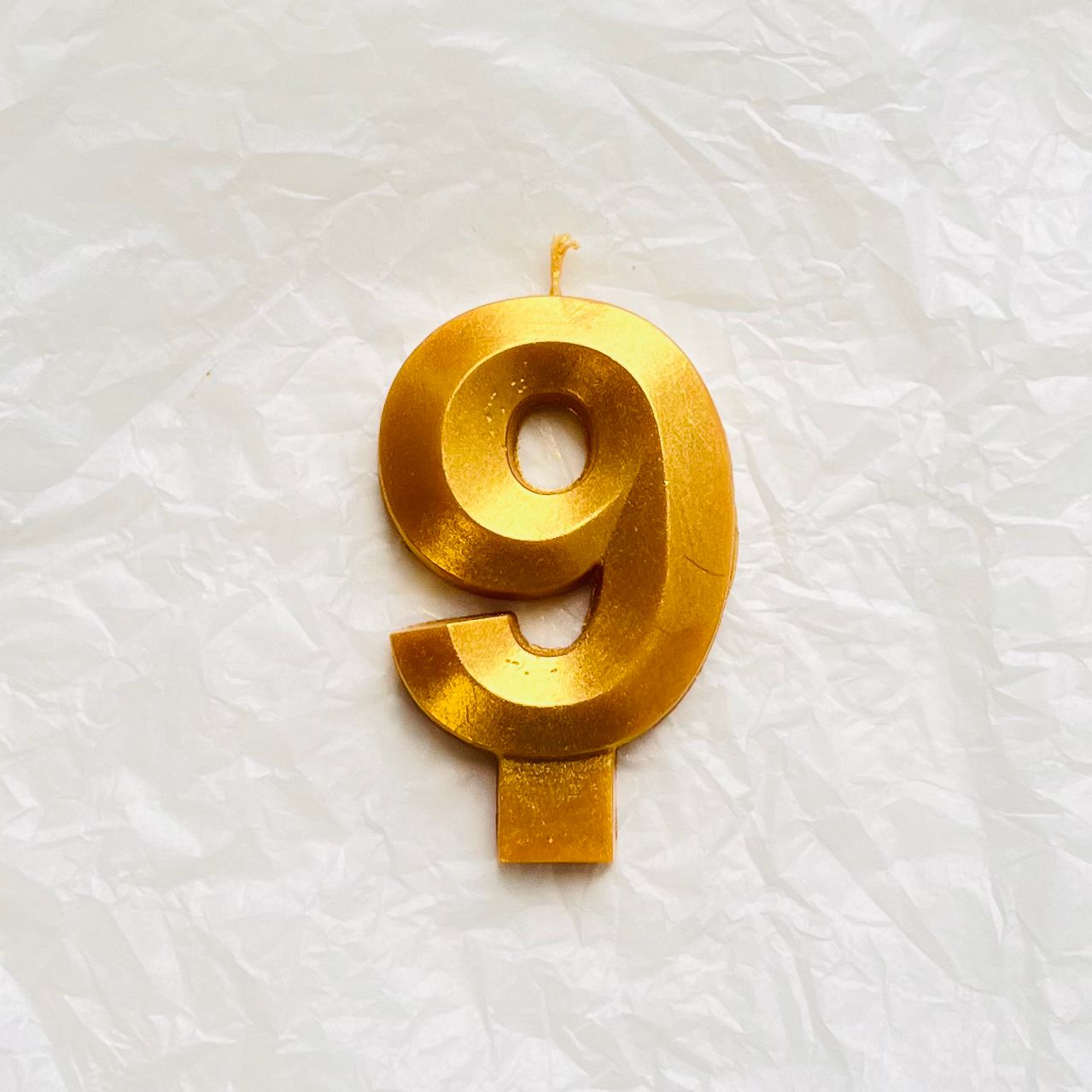 Свеча для торта восковая "Грани", "Цифра 9", золото
