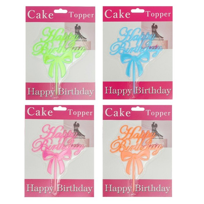 Топпер в торт Happy BIRTHDAY, с бантом, цвета МИКС